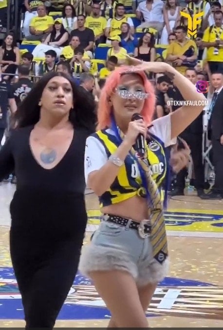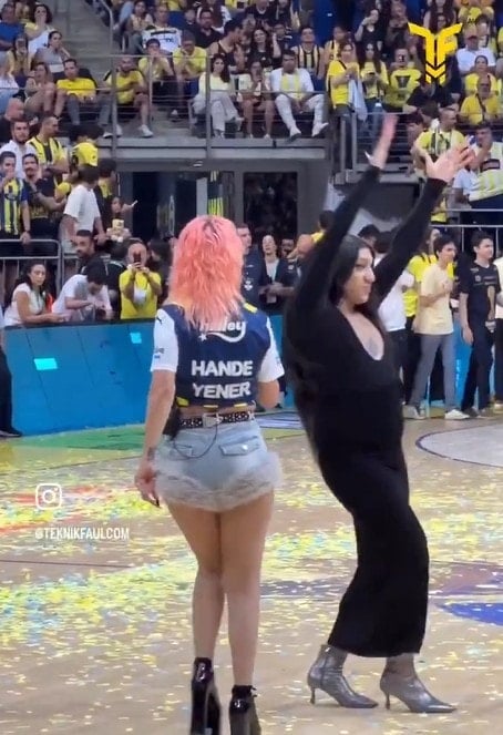 Ülker Spor ve Aktiflik Salonu’nda şampiyonluğu kutlayan Sarı Lacivertliler, Hande Yener’in müzikleriyle eğlendi. Ünlü müzikçi Yener, siyah elbiseli ve uzun siyah saçlı bir dansçıyla birlikte salona çıktı.